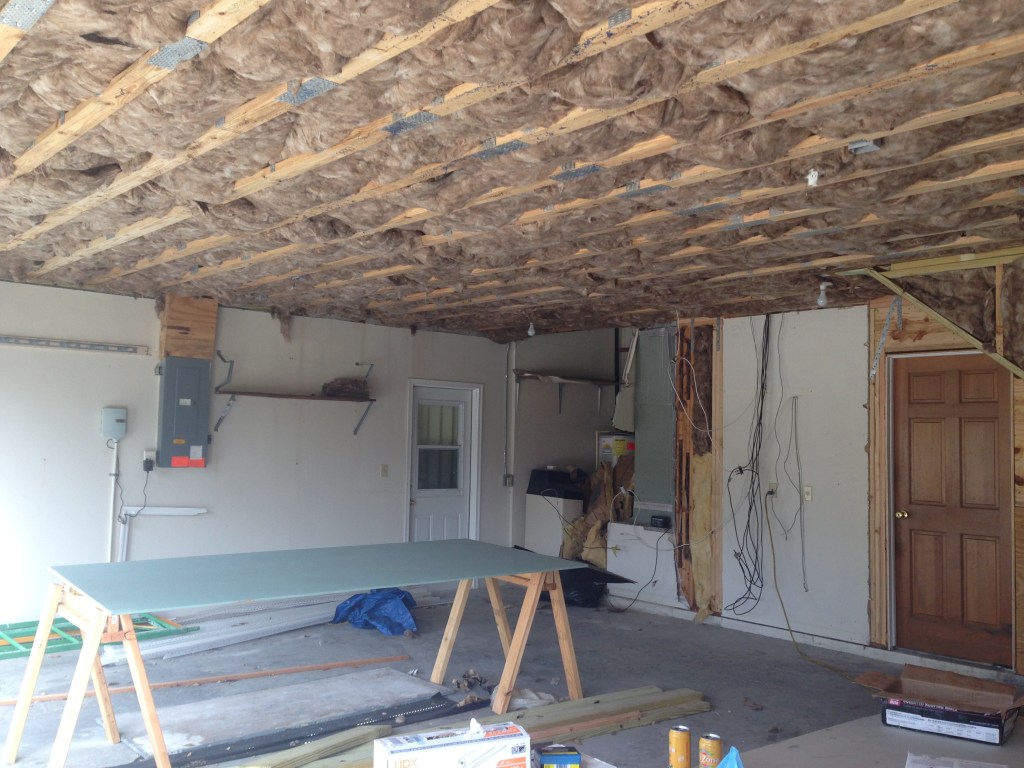 Insulating the garage ceiling for a second floor addition. (Project #16-09)
