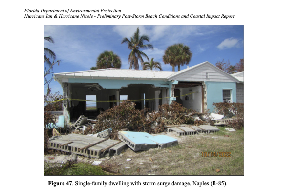 Similar damage occurred on the Southwest coast of Florida, too. While the impacts of wind were greater, the homes protected by sand dunes, and raised on stilts, fared better against the storm surge than homes at ground level without dunes (many were directly on the beach, or simply on canals).