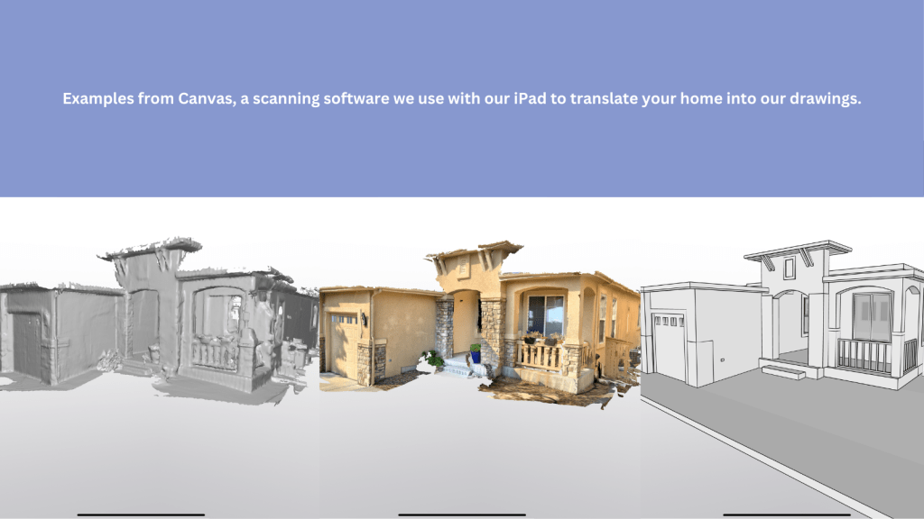 It takes about 2 hours to photograph, scan and measure an average-sized house. Your Architect will need access to the interior of your home, including the attic, all utility areas, and outside.