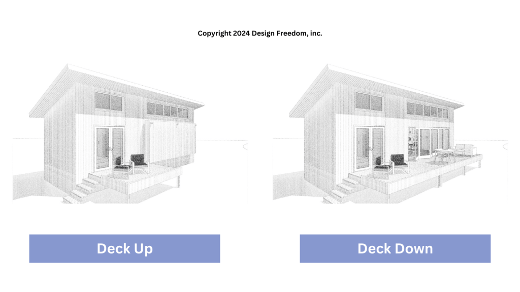 Here’s the scoop: This cozy abode measures 12 feet wide by 36 feet long, giving you 432 square feet of indoor living space. The deck, stretching 8 feet deep and running 32 feet along the house, adds another 256 square feet. Altogether, you’ve got a delightful 688 square feet of combined indoor and outdoor space to enjoy!