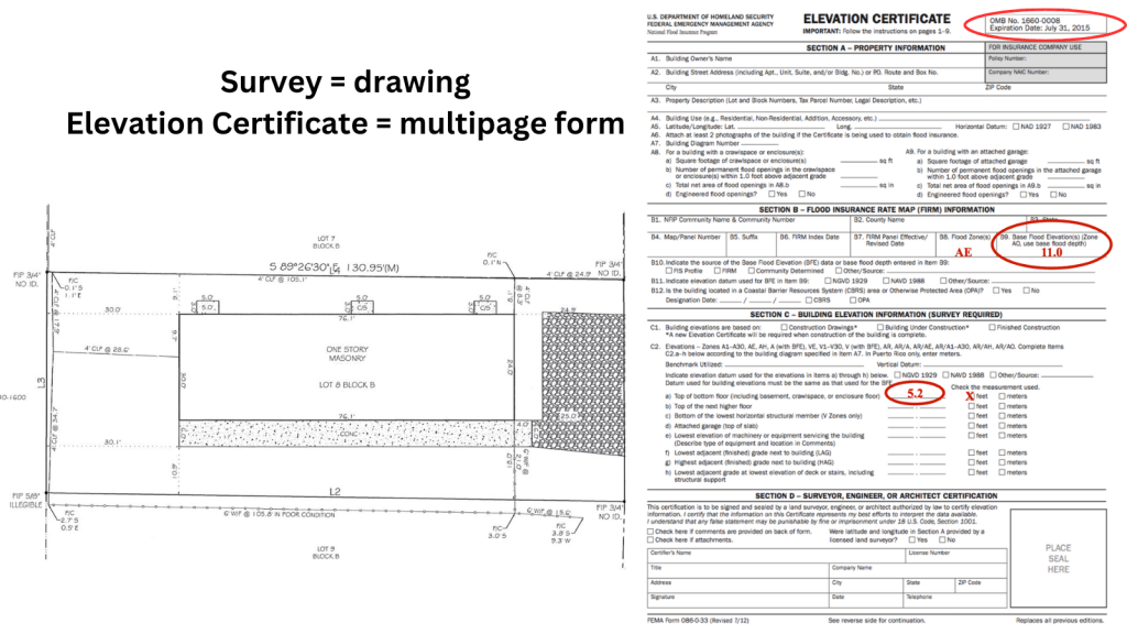Before diving into design, having a current survey and an Elevation Certificate for your property is essential. Here’s how they help: