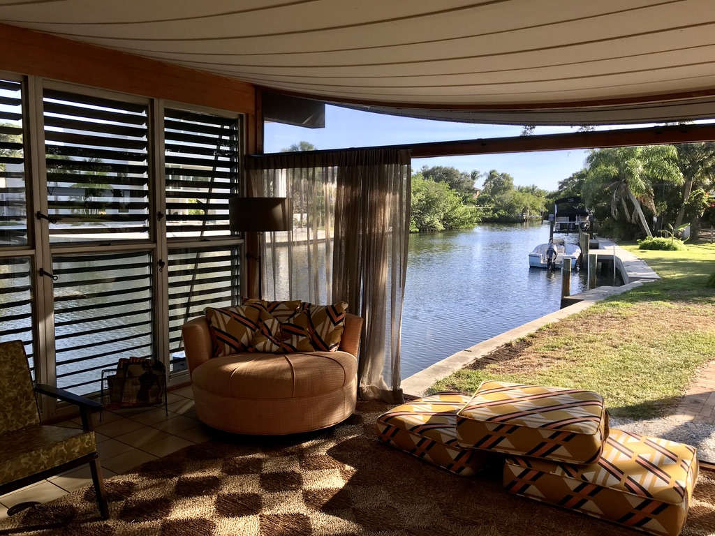 They used innovative (for the time) materials such as plywood and Ocala block, opening up walls with floor-to-ceiling glass and sliding doors to connect indoors and out. Large roof overhangs shielded homes from sun and rain, and local cypress was used for beams and paneling — a material that naturally resists Florida’s sun and moisture with minimal maintenance.